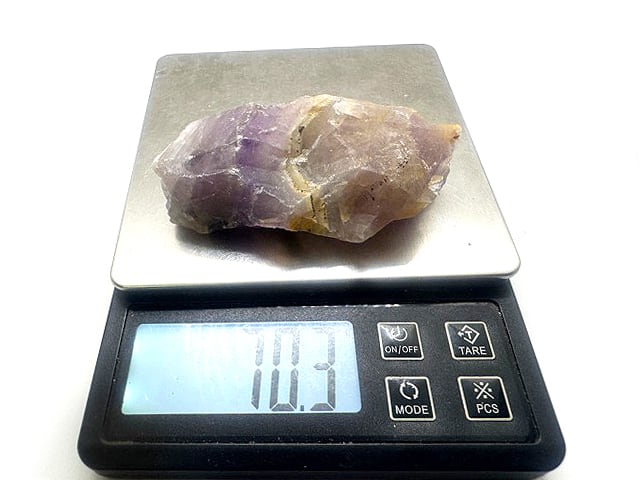 「人気のあるオーラライト23の最初の発見者であり、専属採掘者であるハワード・ピルスメーカー氏は、新しく強力なクリスタルを発見する磁石のような方です。2023年彼はオーラライト23が採掘される地域で、別の豊かな採掘現場に遭遇し、この場所から彼がオーラスターライトと名付けた新しい石が発見されました。オーラライト23と同様にアメジストベースですが、オーラスターライトは、アメジストの色が濃く表面は黒く見えます。石をスライスすると、美しい色の層が現れます。クォ―ツや様々な色合いのアメジストに加えて、シトリンやスモーキークォ―ツを含有しているものも存在します。これらの結晶の生成は、さまざまな層が加わるにつれ、長期間にわたって起こったと思われます。