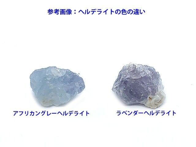 シモンズさんの邦訳の最新の著書『新しい意識の石』にもヘルデライトは取り上げられていました。また、シナジー12の一員の石ですね。アフリカングレーヘルデライト原石Aはモザンビーク産となります。7枚目の画像は参考画像ですが、ラベンダーヘルデライトとアフリカングレーヘルデライトを並べてみました。アフリカングレーヘルデライトは、グレーというよりも灰色の混ざった明るい水色のようですね。色の波動が異なるのはわかると思います。でも、モザンビーク産のヘルデライトを名付けたのはヘブン&アース社なのでそのままの色とします。ヘルデライトは、身体的には脳機能、頭痛などに対応しております。石を使用すれば病気が治るということではございませんのでご了承くださいませ。後は、脳の前頭葉の箇所のハイヤーマインドを活性化してくれますので、正にこの時代のタイミングの石だと思います。ご縁を感じられる方はこの機会にという感じです。