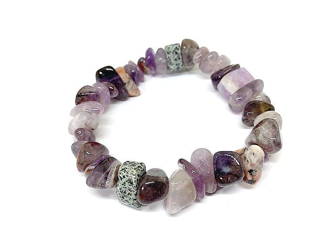 オーラライト23のチャンクブレスレットをベースにシナジーブレスレットを作成してみました。アマゼツとガーディアナイトとローゾフィアにつきましては、H&E社から仕入れた原石を加工して作成しております。