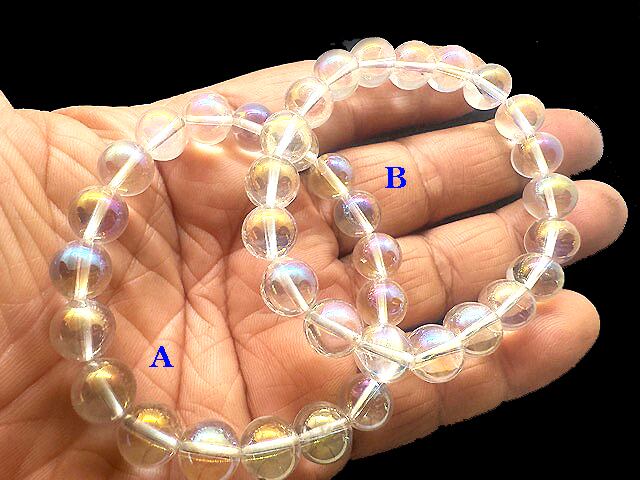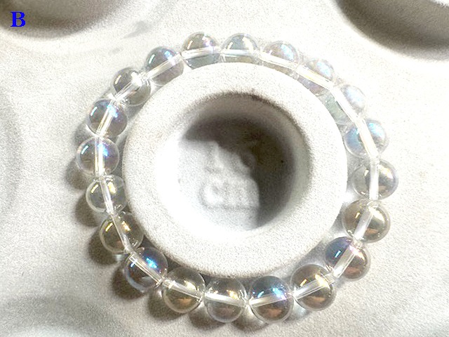 今回、エンジェルオーラクォ―ツのブレスレットを入荷しました。昨年末にシモンズさんの講座を受講した時にエンジェルオーラクォ―ツを用いるワークがあったのですが、それを行った時にスピリットの領域に行くことができて様々なガイドと出会いとても有益な体験をしたからです。一般的に染めたビーズ等エネルギー的には良くないものが多いのですが、やはりエンジェルオーラクォ―ツは、その美しさですね、それが虹色の波動をそのまま保持していますので、やはりそういったものと共鳴しやすいと感じました。この美しい虹色を眺めているだけで、気分がウキウキした高揚した気分になりますね。価格が高いものだけが高波動石ではなくて、エンジェルオーラクォ―ツは高い波動を保持している石になります。すべては、身に着ける人の潜在意識にブロックするものが多いか否かなんですね。多いと受け取れる容量が小さいのでそうなりますが、手放しとか進めている方であれば、潜在意識の中の容量が多いので作用も大きくなるという感じですね。パワフルな石は確かにパワフルではありますが、誤解しないで頂きたいのは、受け取る方の設定に左右されるということですね。私もyoutubeで金運アップ動画とか公開していますが、やはり受けての在り方によって、恩恵を受ける作用は差が出ると思います。